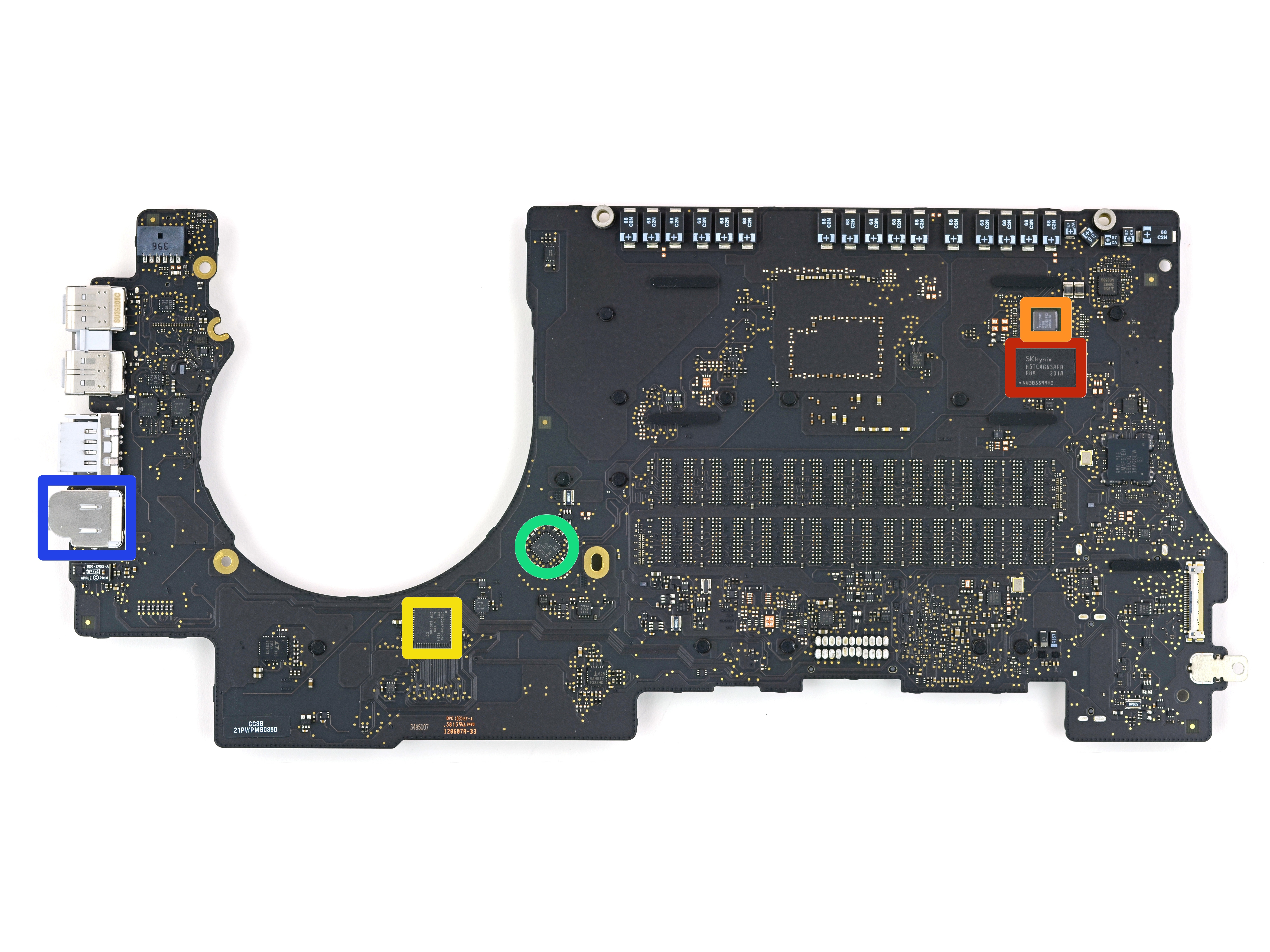 Review this image you'll see the Thunderbolt chip is green outlined on the far Right: MacBook Pro Retina - logic board (top side) You may need to pull the logic board to look at the other side: MacBook Pro Retina - logic board (bottom side) the area of concern is the top left here.