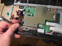 Unplug the black ribbon cable, the blue and the white plugs from its sockets and unscrew the cable which is attached with a screw (see second image)