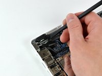 Use a spudger to carefully disconnect the microphone cable from the logic board. You'll want to work from side to side, and slowly wiggle the plug back and out of its socket.