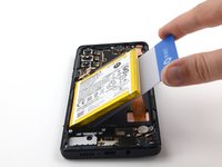 Carefully slide a plastic card underneath the battery to cut through the adhesive.
